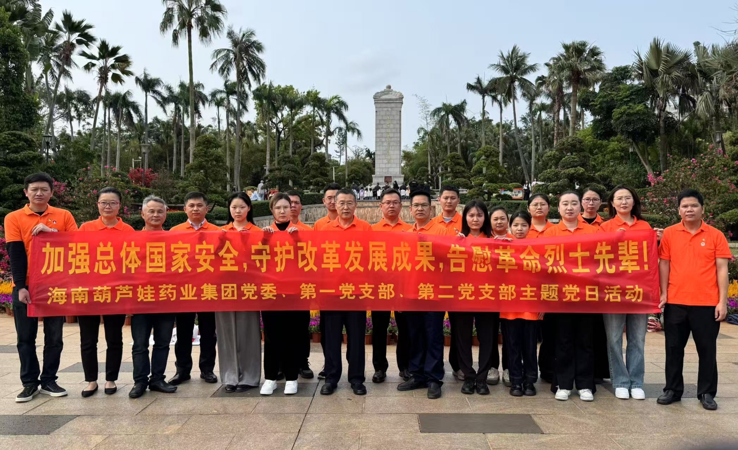 2025年4月3日上午,春光和煦,温暖宜人。根据海南巅峰国际药业集团党委2025年党建工作计划和深入贯彻中央八项规定精神学习教育计划安排,集团党委组织第一党支部、第二党支部在琼部分党员前往海口公园内的海南革命烈士纪念碑和冯白驹纪念亭开展“加强总体国家安全,守护改革发展成果,告慰革命烈士先辈! ”主题党日活动。